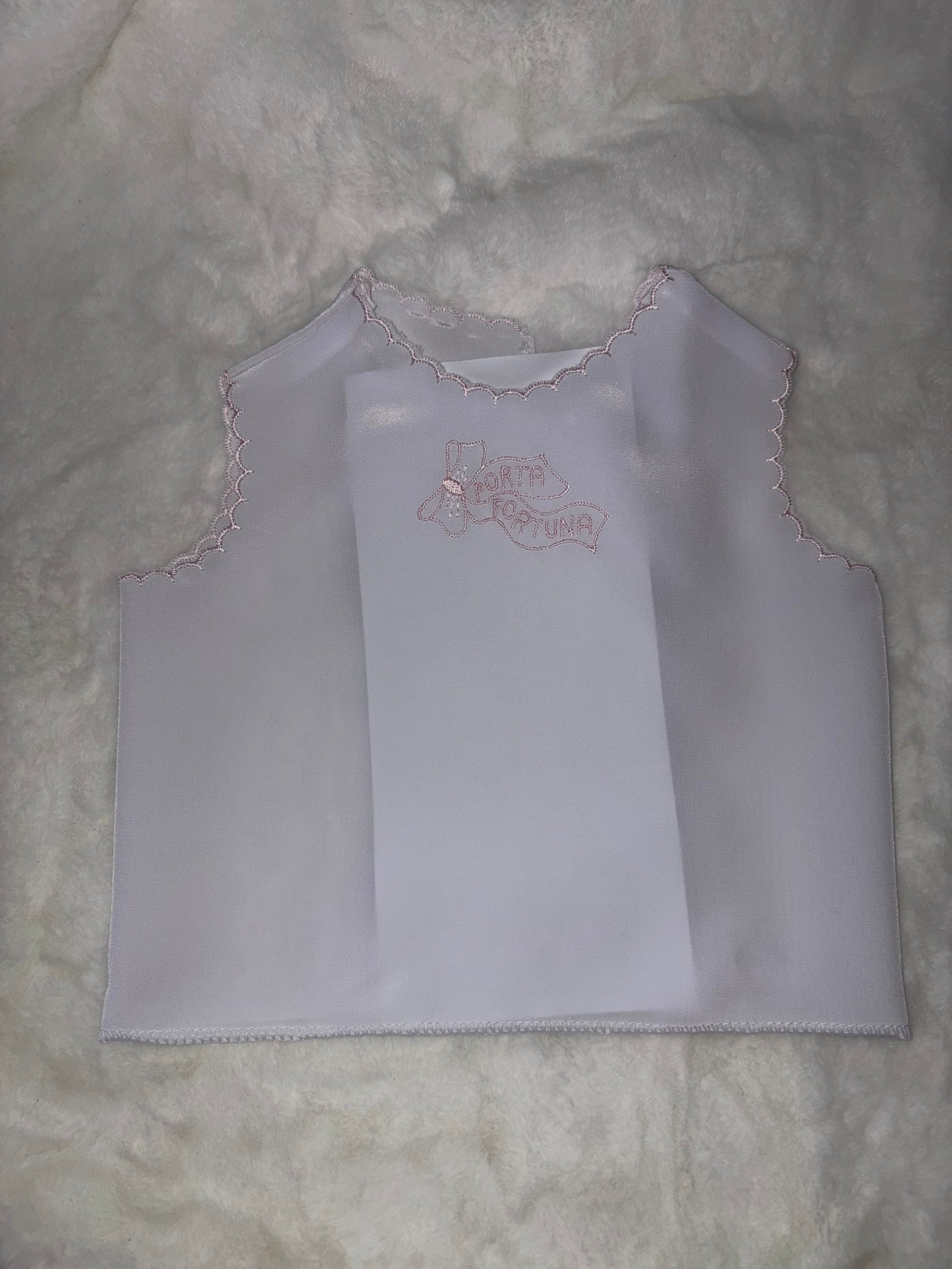 Camicina “porta fortuna” Bianca con ricami in rosa.