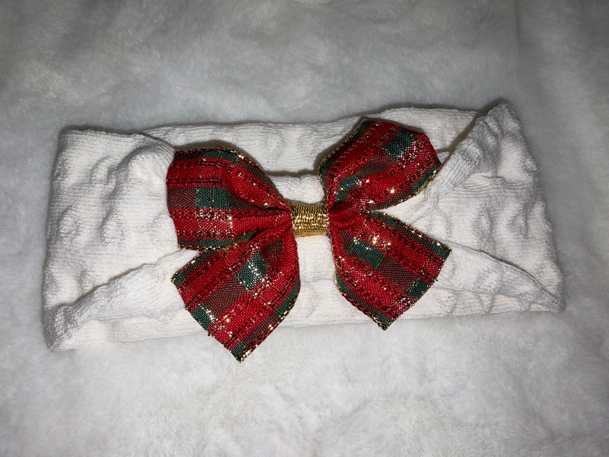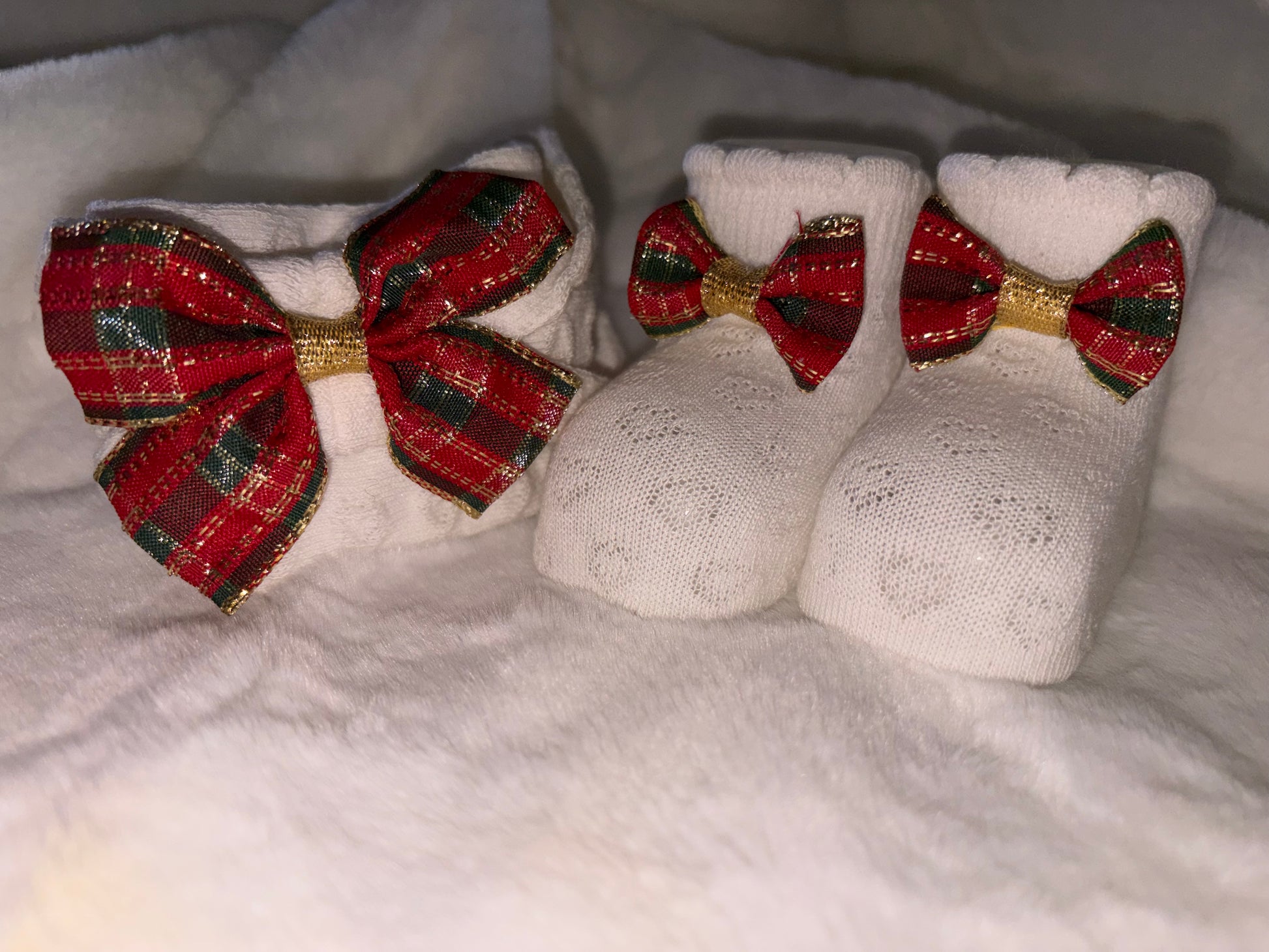 Adorabile set Nazareno, composto da scarpette e fascia panna/scozzese.
