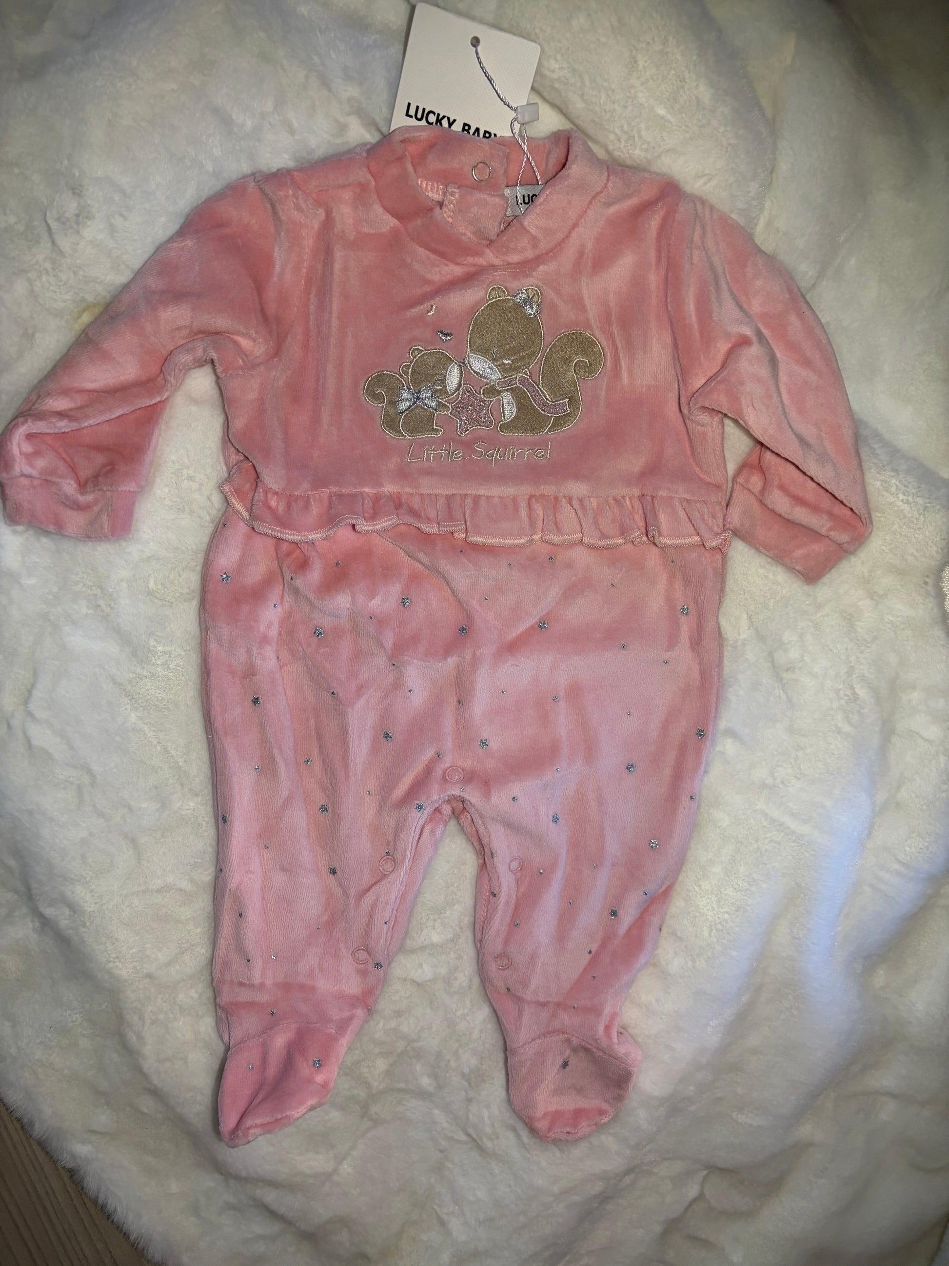 Tutina Baby in morbida CINIGLIA e Cotone finemente RICAMATA con comode aperture a "clips" davanti centrale.