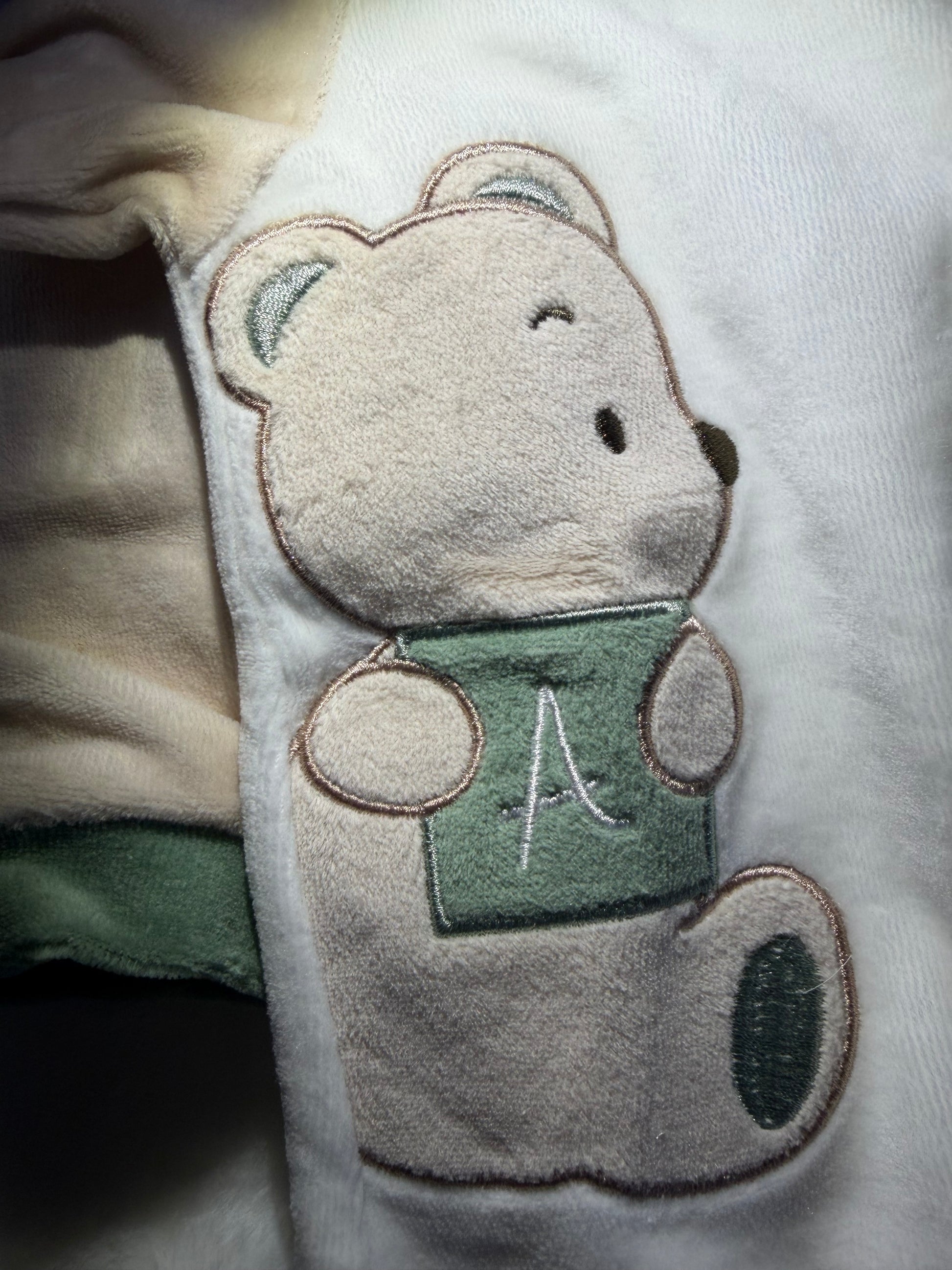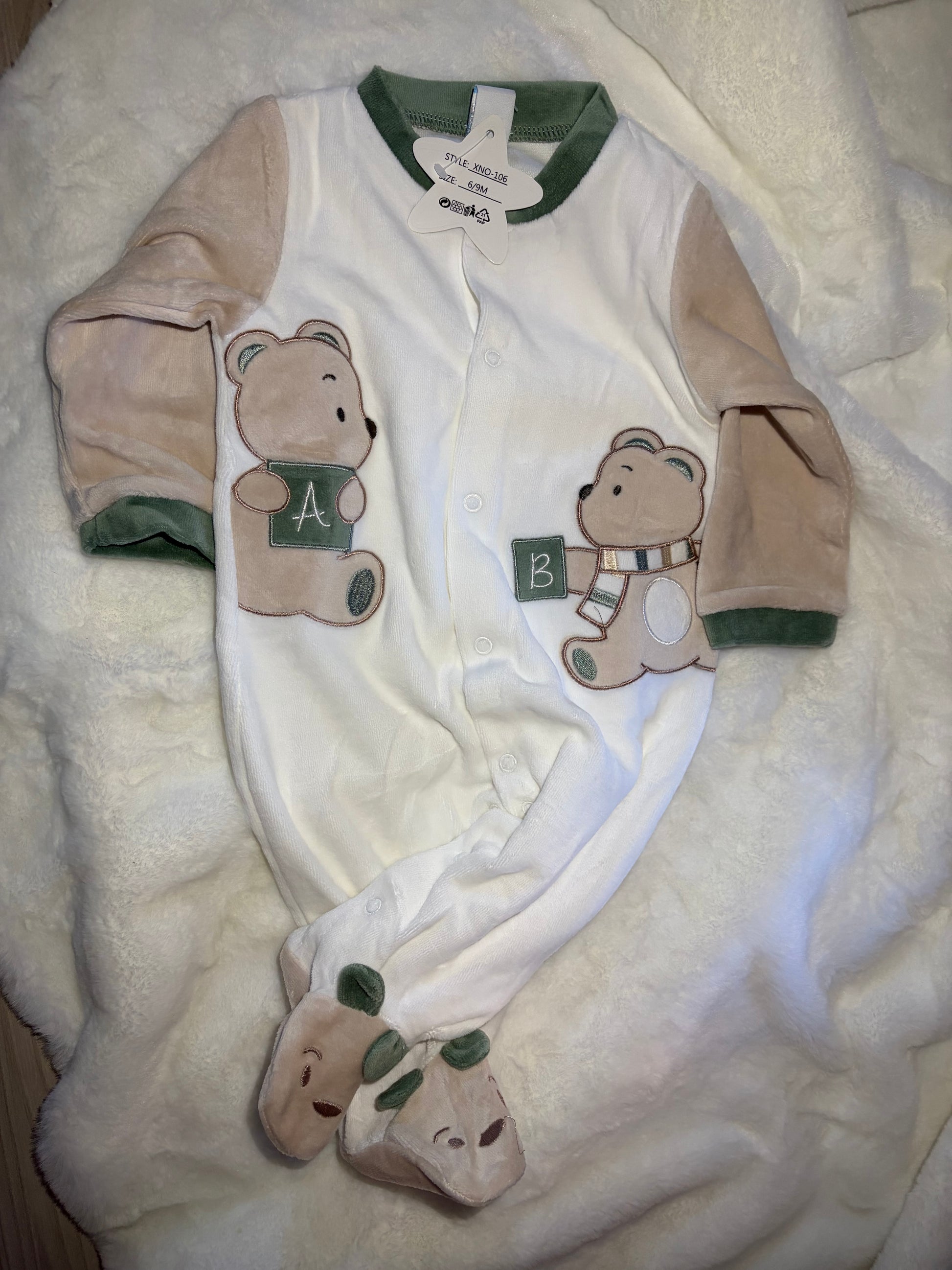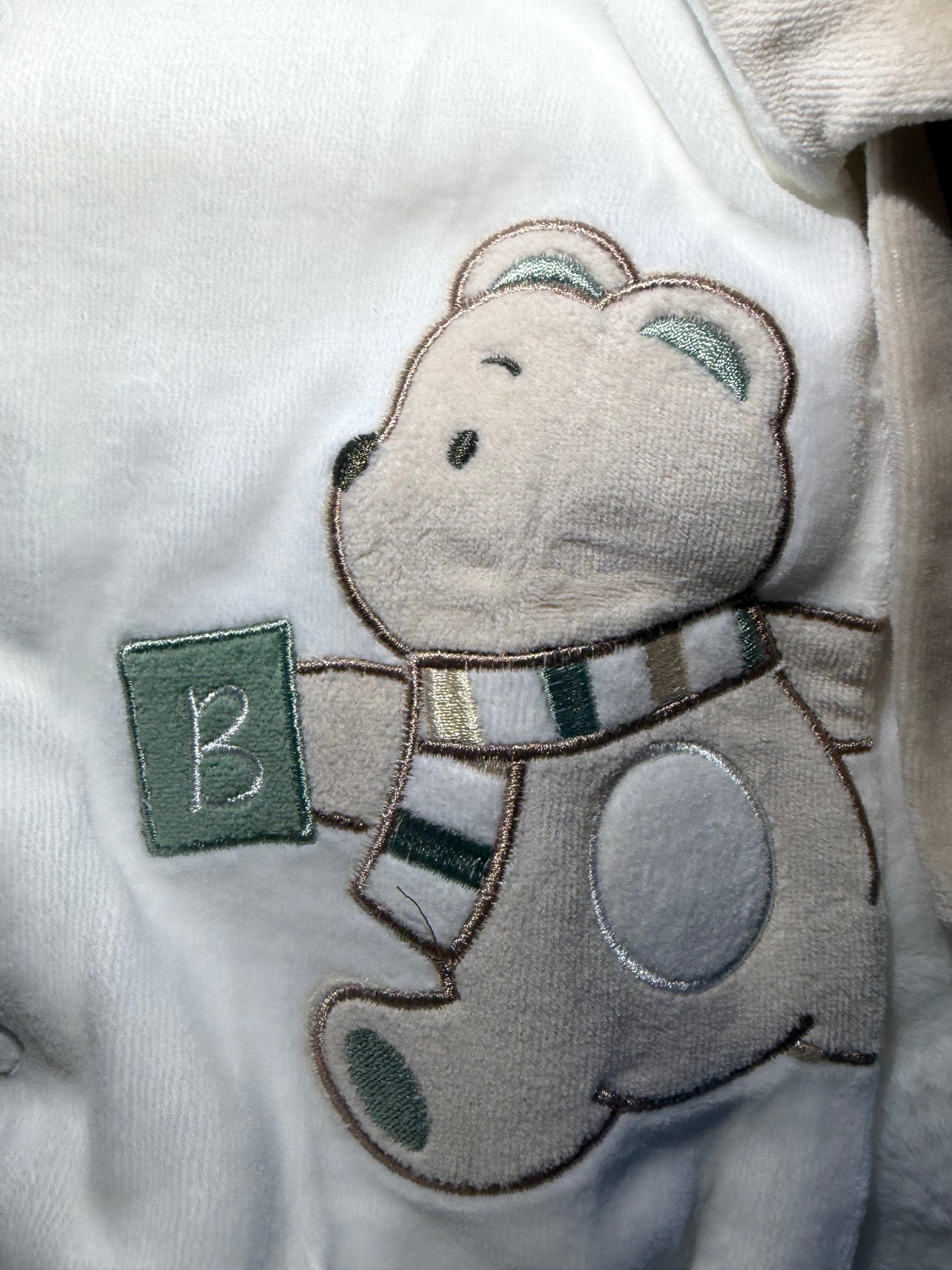 Tutina Baby in morbida CINIGLIA e Cotone finemente RICAMATA con comode aperture a "clips" davanti centrale.